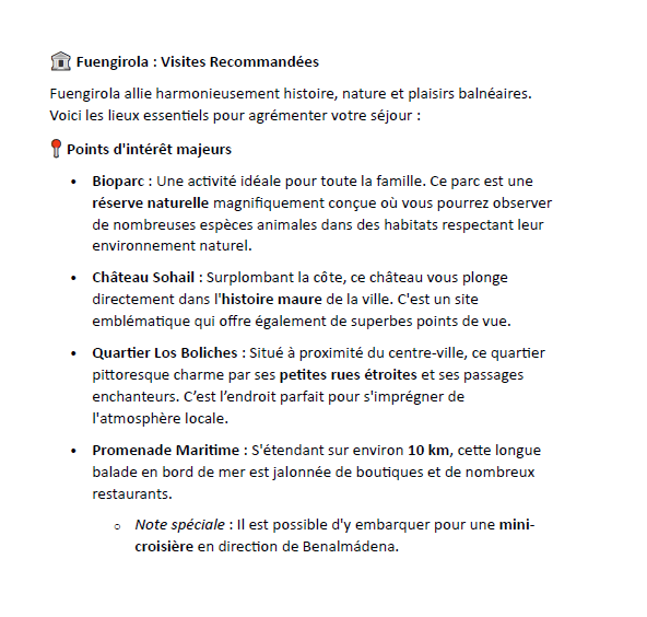 Par la suite, les années 1960 arrivant, Franco a décidé d’opter pour le tourisme de masse, détruisant pas mal de côtes du pays, dont Fuengirola. Actuellement Fuengirola est une petite ville avec les avantages d’une grande. Elle a une corniche de 8 km où l’on peut se promener et se baigner sur ses plages de sable fin très bien entretenues.